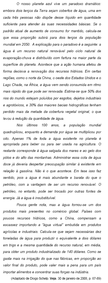 Atenção: As questões de números 10 a 20 baseiam-se no texto apresentado abaixo.