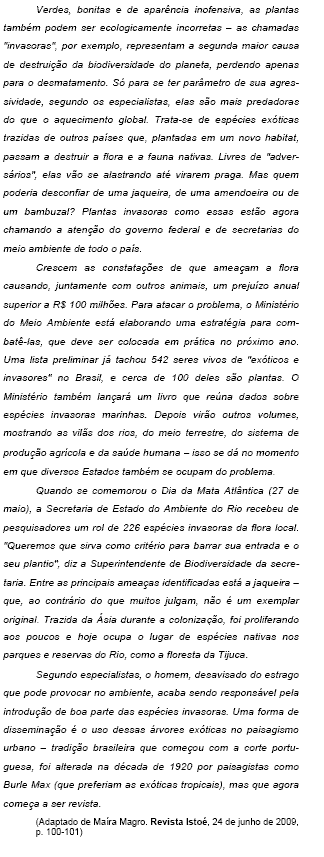 Instruções: As questões de números 12 a 20 baseiam-se no texto apresentado abaixo.