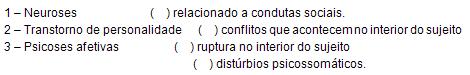 Segundo o Manual de Saúde Mental, no que se refere aos quadros nosológi-cos, numere a segunda coluna de acordo com a primeira: