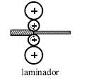 As chapas de aço utilizadas na construção de um tanque de armazenagem podem ser fabricadas por um processo de conformação mecânica chamado laminação. Esse processo é muito utilizado após a fabricação dos lingotes de aço, provenientes da fundição. Algumas características importantes devem ser observadas para que esse processo resulte em produtos de qualidade, com propriedades físicas adequadas e bom acabamento. A figura abaixo apresenta um tipo de laminador bastante comum utilizado na indústria.
