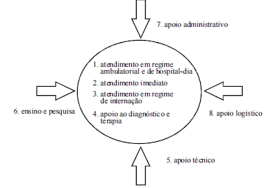 As atribuições indicadas pelos números 1, 2, 3 e 4 são atribuições meio, visto que constituem funções diretamente ligadas à atenção e assistência à saúde.