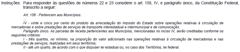 Considerando que, em determinado Município não há contribuintes do ICMS sujeitos à tributação simplificada a que se refere o parágrafo único do art. 146 da Constituição Federal (SIMPLES NACIONAL), nem em outras situações em que se dispensem os controles de entrada, é correto afirmar que o valor adicionado a que se referem o disposto no inciso I do parágrafo único do art. 158 da Constituição Federal, acima, e a Lei Complementar 63/90, corresponderá, para cada município, o valor das mer cadorias saídas,