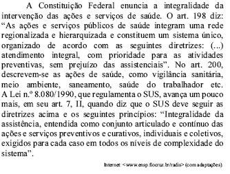 A diretriz da integralidade, tratada no texto acima, tem muitos e diferentes sentidos, complementares em sua maior parte. Esses sentidos incluem o(a)