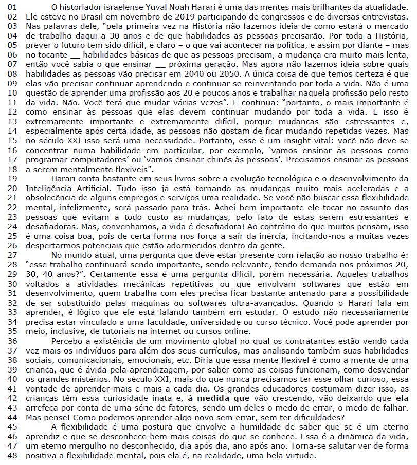 (Disponível em https://www.contioutra.com/ser-mentalmente-flexivel-habilidade-essencial-no-seculo-xxi/– texto adaptado especialmente para esta prova.)