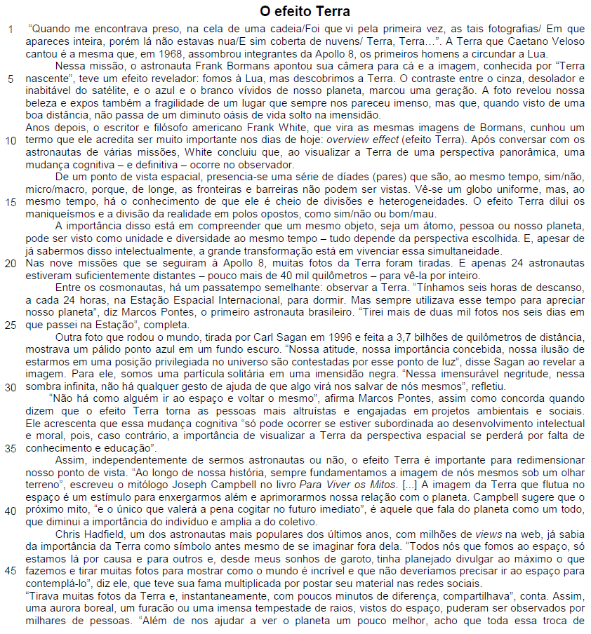 INSTRUÇÃO: Leia, com atenção, o texto a seguir para responder à questão que a ele se refere.