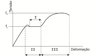 O gráfico abaixo mostra a relação de tensão e deformação típica de vergalhões de aço CA-50 e CA-25 para concreto armado.