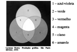 Na síntese aditiva, tem-se as cores compostas amarelo, ciano e magenta, que derivam da síntese das cores secundárias.