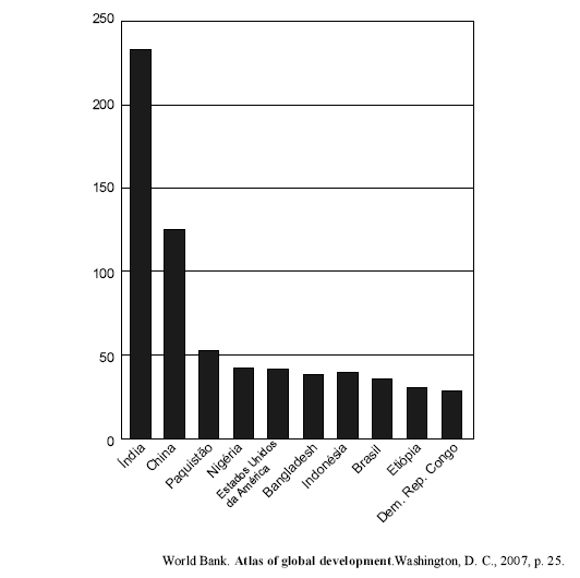 O século XX assistiu a um rápido crescimento da população mundial, que partiu de 1,6 bilhões e alcançou 6,1 bilhões. Não se prevê uma estabilização para o atual século, porém, para 2050, a expectativa é de 9 bilhões de habitantes no planeta. Abaixo, o gráfico mostra os dez países que deverão apresentar o maior incremento populacional no mundo.