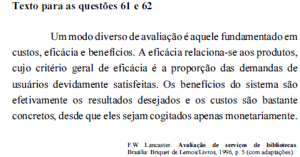 Biblioteconomia - Organização e administração de bibliotecas - Centro de Seleção e de Promoção de Eventos UnB (CESPE) - 2014