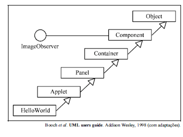 As setas que relacionam os elementos HelloWorld, Applet, Panel, Container, Component e Object são referências de memória.