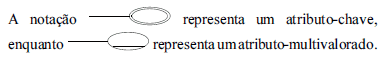 O diagrama entidade-relacionamento (DER) constitui uma forma de representação gráfica para os conceitos atribuídos ao modelo entidade-relacionamento. A respeito de notações adotadas no DER, julgue os itens que seguem.