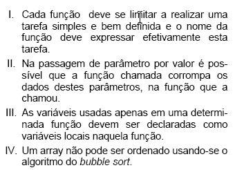Analise as seguintes afirmações relativas a Programação de Computadores.Indique a opção que contenha todas as afirmações verdadeiras.