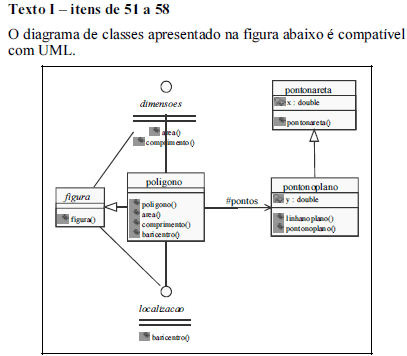 Com relação ao diagrama de classes ilustrado no texto I, julgue os itens que se seguem.