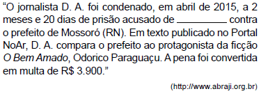 O crime contra a honra que completa a lacuna dessa matéria é: