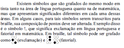 Ao se realizar a transcrição de um texto escrito em tinta para a escrita braille, é necessário atentar para as características próprias desse sistema, como