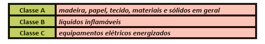 A tabela a seguir mostra três classes de incêndio: