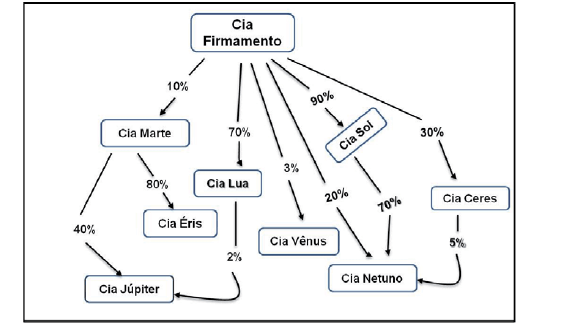 Observado o exposto no gráfico de Participações Societárias da Cia. Firmamento, a seguir, pode-se afirmar que.