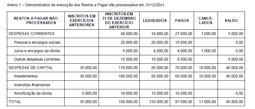 empenhadas, mas não pagas até o dia 31 de dezembro, distinguindo-se as processadas das não processadas.