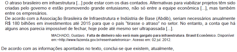falta de dinheiro no mercado de capitais para financiamento de projetos de infraestrutura.
