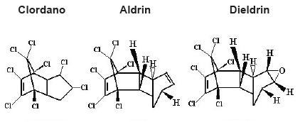 A figura abaixo mostra 3 tipos de pesticidas organoclorados: