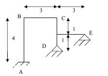 No pórtico plano abaixo, os valores das reações de apoio HA, VA e VD são, respectivamente: