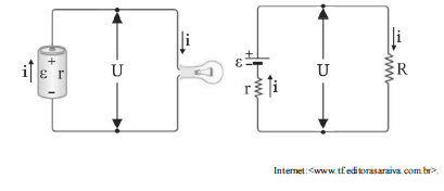 Com referência à figura acima, que mostra uma lâmpada incandescente automotiva de 12 V e 60 W, sob teste em uma bancada com uma bateria de tensão nominal igual a 6 V e resistência interna igual a