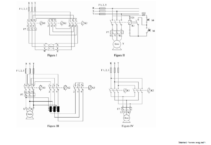 A figura IV mostra esquema de alimentação de motor com inversão de rotação.