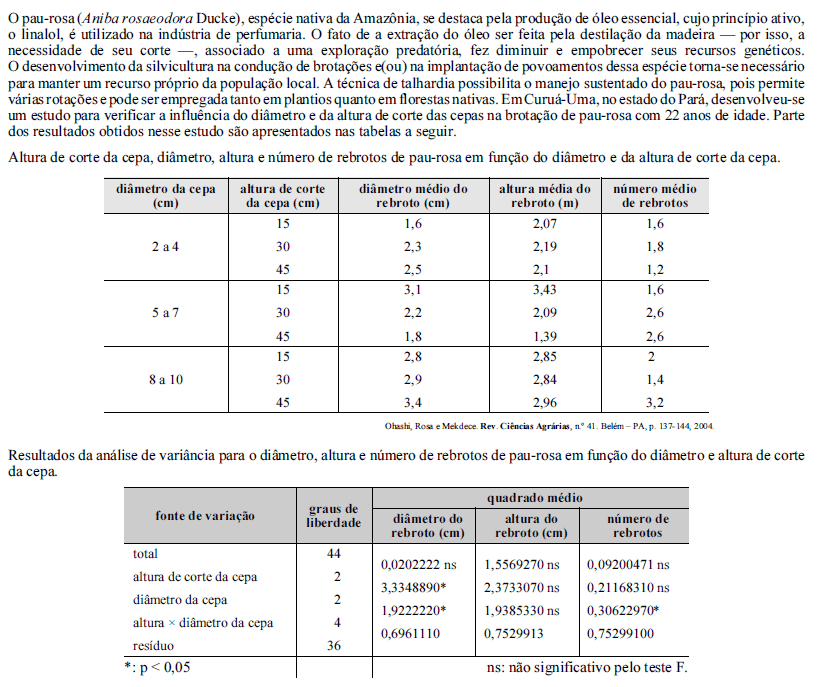 Na condução de povoamentos de pau-rosa por talhardia, o corte das árvores deve ser feito a uma altura de 45 cm a partir do solo.