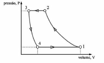 O diagrama precedente indica o ciclo de um compressor alternativo. Considerando o significado das variações de pressão-volume e os processos associados, assinale a opção correta.