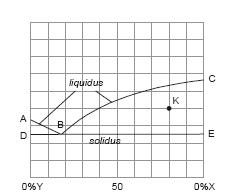 a fase líquida do ponto K é constituída por 60% do componente X e 40% do componente Y.