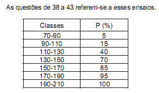 Para a solução das questões de números 38 a 43 utilize o enunciado que segue.