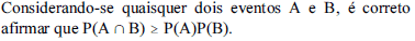 Se P(A | B) = 0, em que P(B) > 0 e A e B são eventos aleatórios, então A e B são independentes.