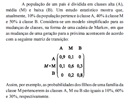 Na hipótese de que o modelo tenha sido válido para a formação da geração atual, então as classes A, M e B na geração anterior eram formadas por 5%, 30% e 65% da população, respectivamente.