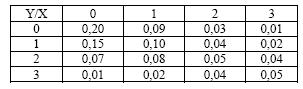 Uma loja de departamentos vende máquinas de lavar roupa e secadoras entre outros eletrodomésticos. A tabela abaixo dá a distribuição de probabilidades conjunta do número Y de máquinas de lavar roupa (linhas) e do número X de secadoras (colunas) vendidas num dia típico.
