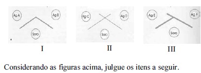 As amostras de antígenos A e B, na figura I, apresentam identidade antigênica entre si quando incubadas com o soro do paciente.
