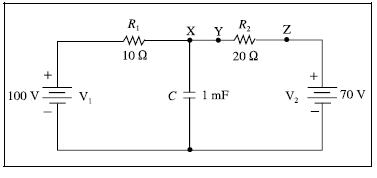 A tensão nos terminais do capacitor é igual a 30 V.
