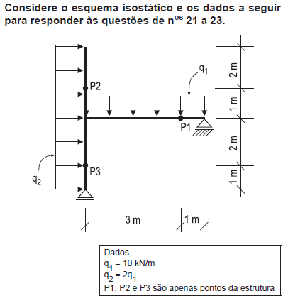 No ponto P1, o valor do momento fletor em kN.m e o sentido de giro são, respectivamente