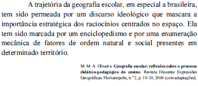 O ensino geográfico pautado por estratégias enciclopedistas não propicia a reflexão a respeito da construção e apropriação do espaço.