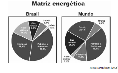 A maior parte da energia utilizada no mundo (86,7%) provém de fontes não renováveis, entre as quais se incluem petróleo e derivados e gás natural. No Brasil, o percentual de energia proveniente de fontes não renováveis corresponde a 55,3%.