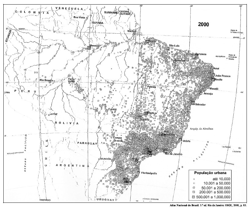 Em relação à extensão territorial do Brasil, há um número limitado de cidades com características de metrópole articulando a rede urbana, devido ao lento e gradual processo de urbanização vivido pelo país, como conseqüência de sua recente industrialização.