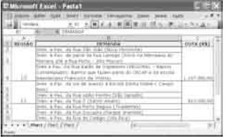 A figura mostrada acima contém parte do orçamento participativo da prefeitura de Cariacica, que está sendo editado no Excel 2003. Considerando essa figura, julgue os itens subseqüentes.