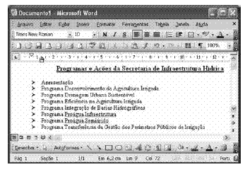 software Word 2003 que contém um documento em processo de edição, julgue os próximos itens. Considerando que os itens da lista mostrada no documento tenham sido formatados com marcadores, essa formatação poderá ser alterada para numeração por meio do seguinte procedimento: selecionar essa lista e, a seguir, clicar o botãoInformática / Microinformática - Word - Centro de Seleção e de Promoção de Eventos UnB (CESPE) - 2009