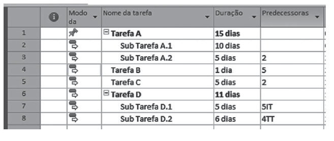A cópia de tela a seguir mostra um projeto descrito no software Microsoft Project 2010.