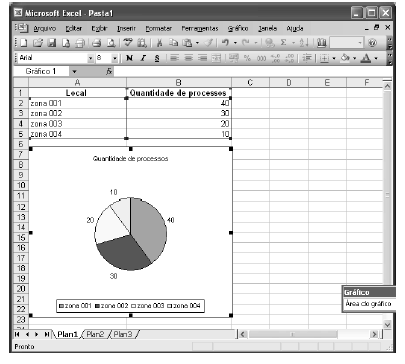No aplicativo Microsoft Office Excel 2003 (configuração padrão), o tipo de gráfico apresentado na figura a seguir é
