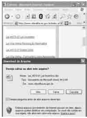 A figura acima mostra parte da janela do navegador Internet Explorer 6 (IE6), na qual uma página da prefeitura municipal de Vila Velha está sendo exibida, e uma janela que foi executada quando o hyperlink