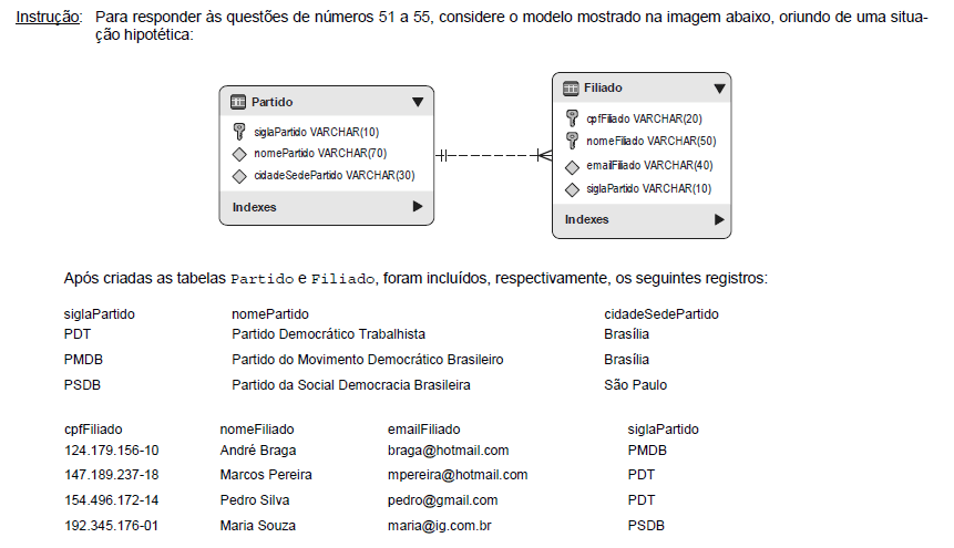 Após a tabela Partido ser criada, para criar a tabela Filiado foi utilizada a instrução abaixo: