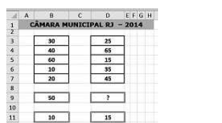 · Em B9, foi inserida a expressão =SOMA(B3;B7). Em seguida, essa célula foi selecionada e mediante os comandos de copiar e colar, seu conteúdo foi copiado para D9.