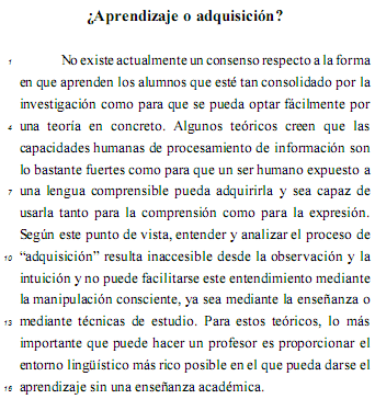 adquisición es interpretada como el fruto de prácticas comunicativas.