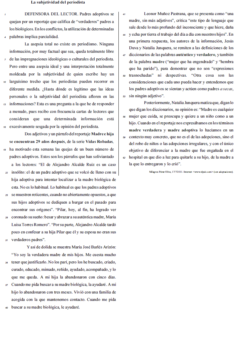 En conformidad con las ideas y estructuras del texto de arriba, juzgue los ítems siguientes.