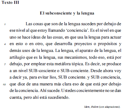 En conformidad con las ideas y estructuras del texto de arriba, juzgue los ítems de 89 a 98.